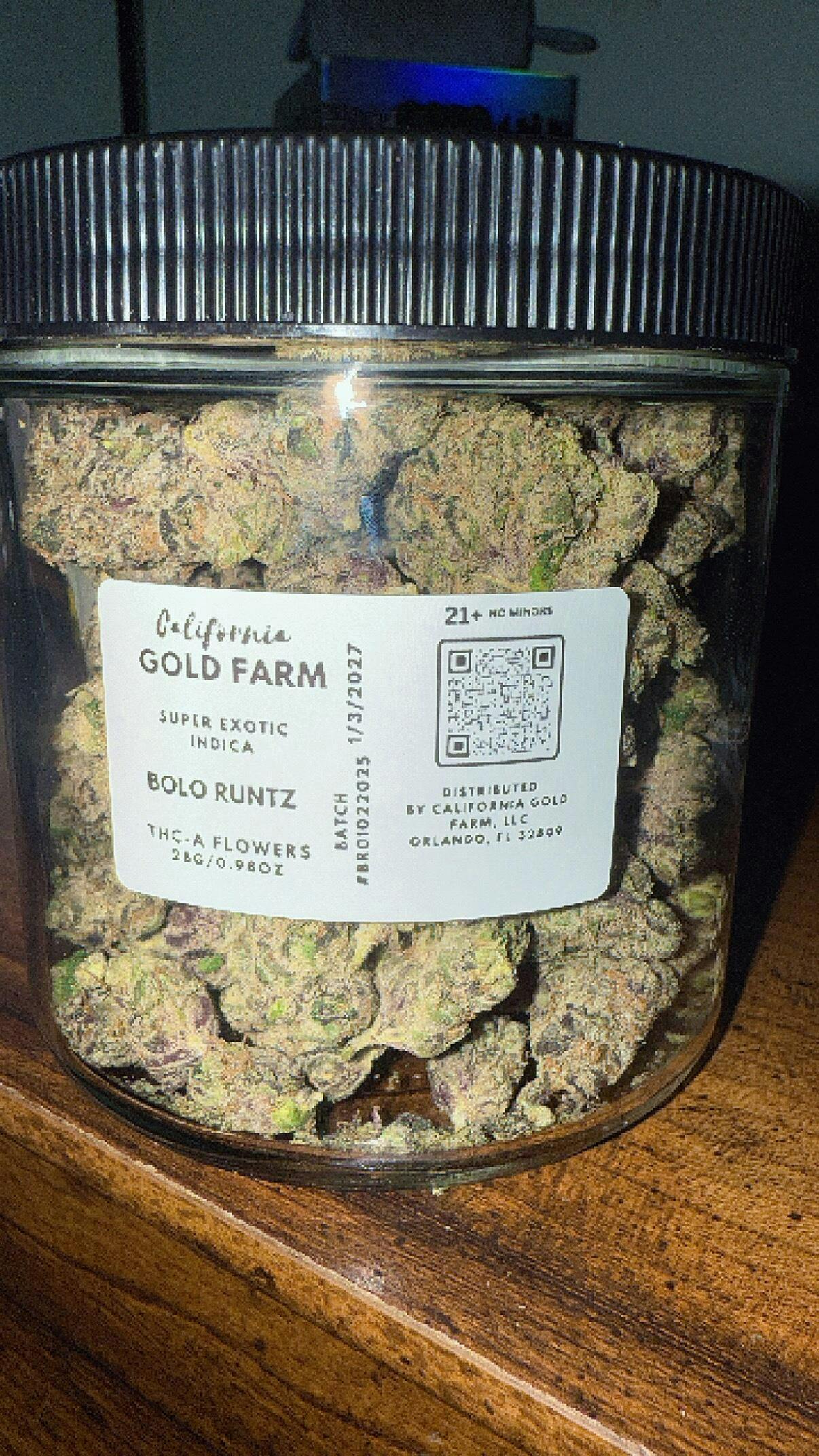 Premium Indoor Craft: Cultivated exclusively in our state-of-the-art indoor facilities using advanced growing techniques, Bolo Runtz benefits from precise environmental control and expert cultivation. Each plant receives championship-level care and is rigorously lab-tested to ensure the exotic quality that defines California Gold Farm's indoor program.